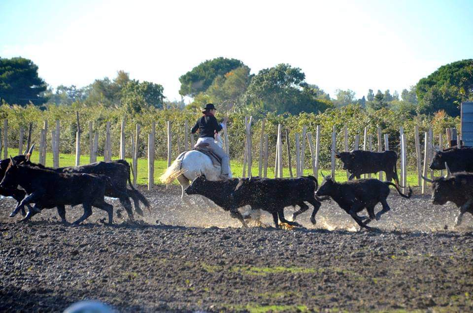 C’est un moment technique et spectaculaire où l’osmose entre le cavalier et son cheval Camargue prend tout son sens. Vous observerez la dextérité nécessaire pour séparer les bêtes au sein de la manade, dans le respect total de l’animal et de la nature.